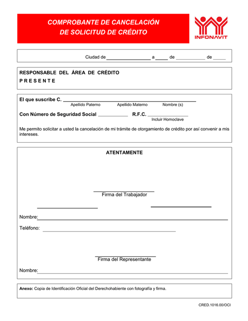 - Solicitud de Dación en pago Infonavit (Se solicita y entrega en las oficinas de Infonavit).